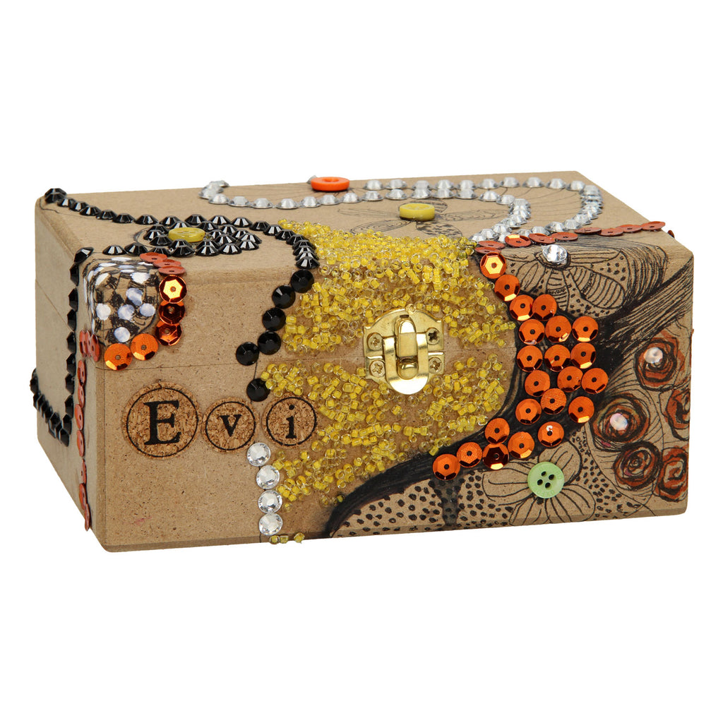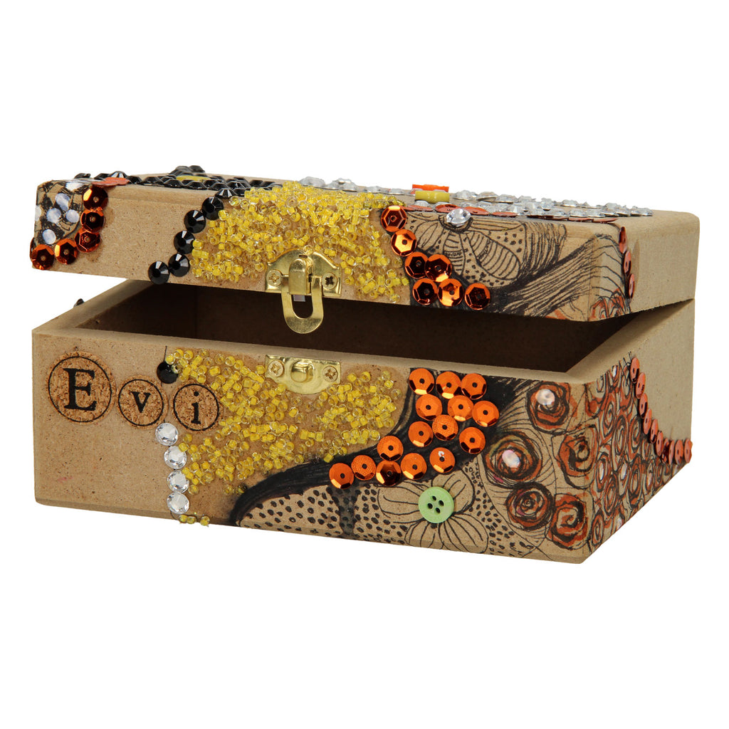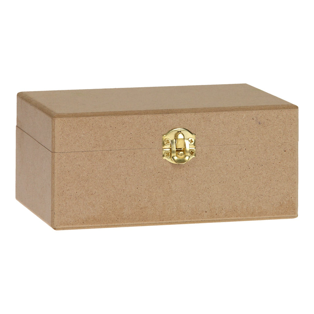 Houten rechthoekige kist gemaakt van MDF. Versier de kist zoals je zelf wilt of gebruik het om spullen in op te bergen. De kist heeft gouden scharnieren waardoor de kist gemakkelijk open en dicht kan.