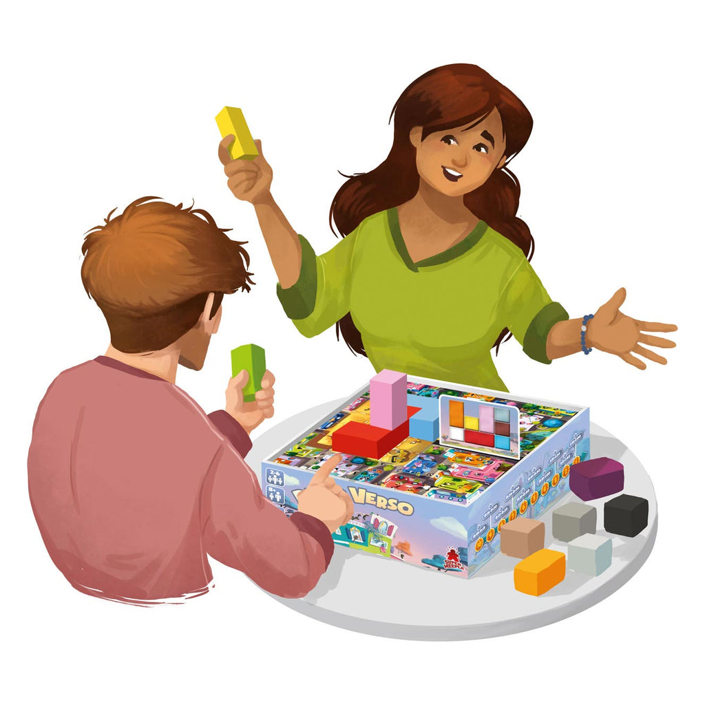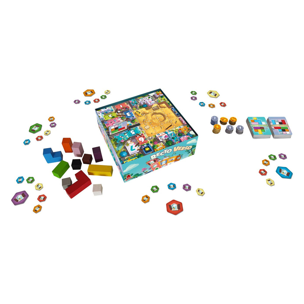 In Recto Verso (winnaar Speelgoed van het Jaar '22 BE) ga je de uitdaging aan om als een architectenduo samen zo snel mogelijk een huis te bouwen. Twee spelers gaan tegenover elkaar zitten en proberen de constructie op de uitdagingskaart te maken door middel van gekleurde houten blokken. Hoewel het gezamenlijke bouwwerk dezelfde contour deelt, verschilt de invulling aan de voor- en achterkant. Aangezien iedere speler enkel maar naar zijn kant van de kaart mag kijken, is communicatie van belang. Alleen door voortdurend met elkaar te overleggen kunnen de spelers ervoor zorgen dat elk gekleurd blokje op de juiste plaats terechtkomt. Terwijl ze tegen de klok racen! Hoe sneller de spelers hun gebouw voltooien, hoe meer punten ze scoren. Een leuk spel voor jong en oud dat je ruimtelijk inzicht en communicatievaardigheden zal vereisen.