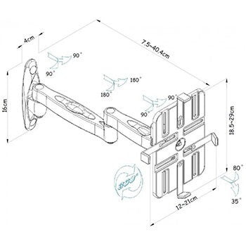 - Muurafstanden van 75mm tot 404mm zijn mogelijk
