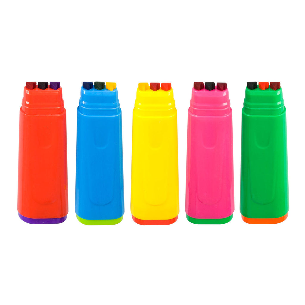 Maak kunstwerken met deze markers! Elke marker bevat 3 verschillende kleuren, waardoor je super kleurrijke lijnen kunt tekenen! Met vijf verschillende markers, heb je dus vijftien verschillende kleuren om creatief mee te zijn! Inhoud: set van 5 kunststof markers met elk 3 kleuren stiften.