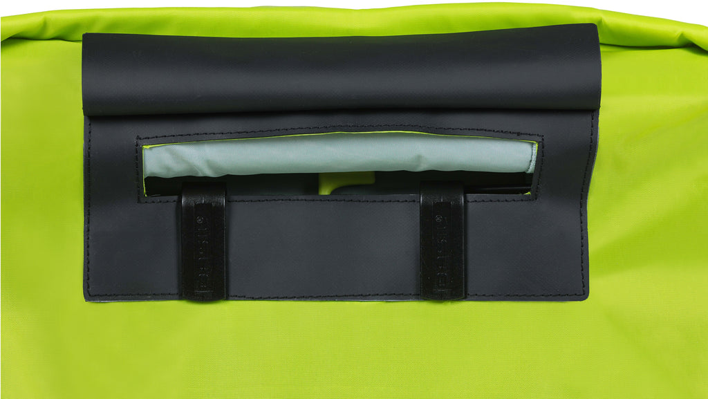 De Basil Keep Dry & Clean regenhoes horizontaal beschermt je tas in zijn geheel tegen regen en opspattend vuil. De handige regenhoes voor bijvoorbeeld een laptoptas is er in een neongele kleur. De Basil Keep Dry & Clean regenhoes is de perfecte accessoire voor jouw fietstas! De speciaal ontworpen horizontale regenhoes beschermt de gehele tas tegen regen en opvattend vuil. Dit model regenhoes is horizontaal en kan daarom goed gecombineerd worden met bijvoorbeeld laptoptassen, messengertassen en fietsschoudertassen. Aan de achterzijde is er rekening gehouden met het Hook- On systeem, zodat je de tas gemakkelijk aan je bagagedrager kunt bevestigen. Deze haken worden door een flap afgeschermd tijdens het fietsen. Zo voorkomt de regenhoes dat er geen regen of vuil op je tas komt. Ook niet aan de achterzijde! En dat is ook fijn wanneer je de tas na je fietstocht mee wilt nemen. De hoes is verstelbaar met een roltopsluiting die je aan de zijkanten met een kliksluiting sluit. Zo pas je de regenhoes helemaal aan jouw tas aan. De horizontale regenhoes is gemaakt in een opvallende neongele kleur, zodat je overdag tijdens een regenbui beter opvalt. Dankzij de reflectie op drie zijden val je in het donker beter op. De Basil Keep Dry & Clean regenhoes horizontaal wordt inclusief een handig opbergzakje geleverd. Eigenschappen: Horizontale regenhoes geschikt voor bijvoorbeeld laptoptassen, messengerbags of fietsschoudertassen. Waterdicht en beschermt de gehele tas tegen regen en opspattend vuil. Gemaakt van 600D sterk polyester. Door de neongele kleur en de reflectie val je op in het verkeer.