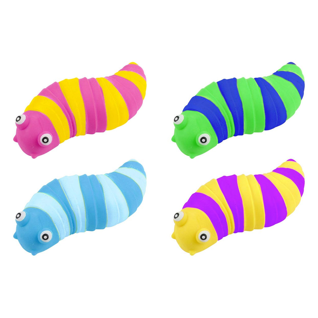 Lekker zachte en super flexiblele rup of slak gevuld met een kneedbare substantie waarin je gewoon MOET knijpen, de hele tijd. Of helemaal uitrekken. Dat is aan jou. Feit blijft dat dit kleurrijke gestreepte dier heerlijk is om mee te friemelen. Fidget forever. Er zijn twee verschillende soorten in 4 kleuren.