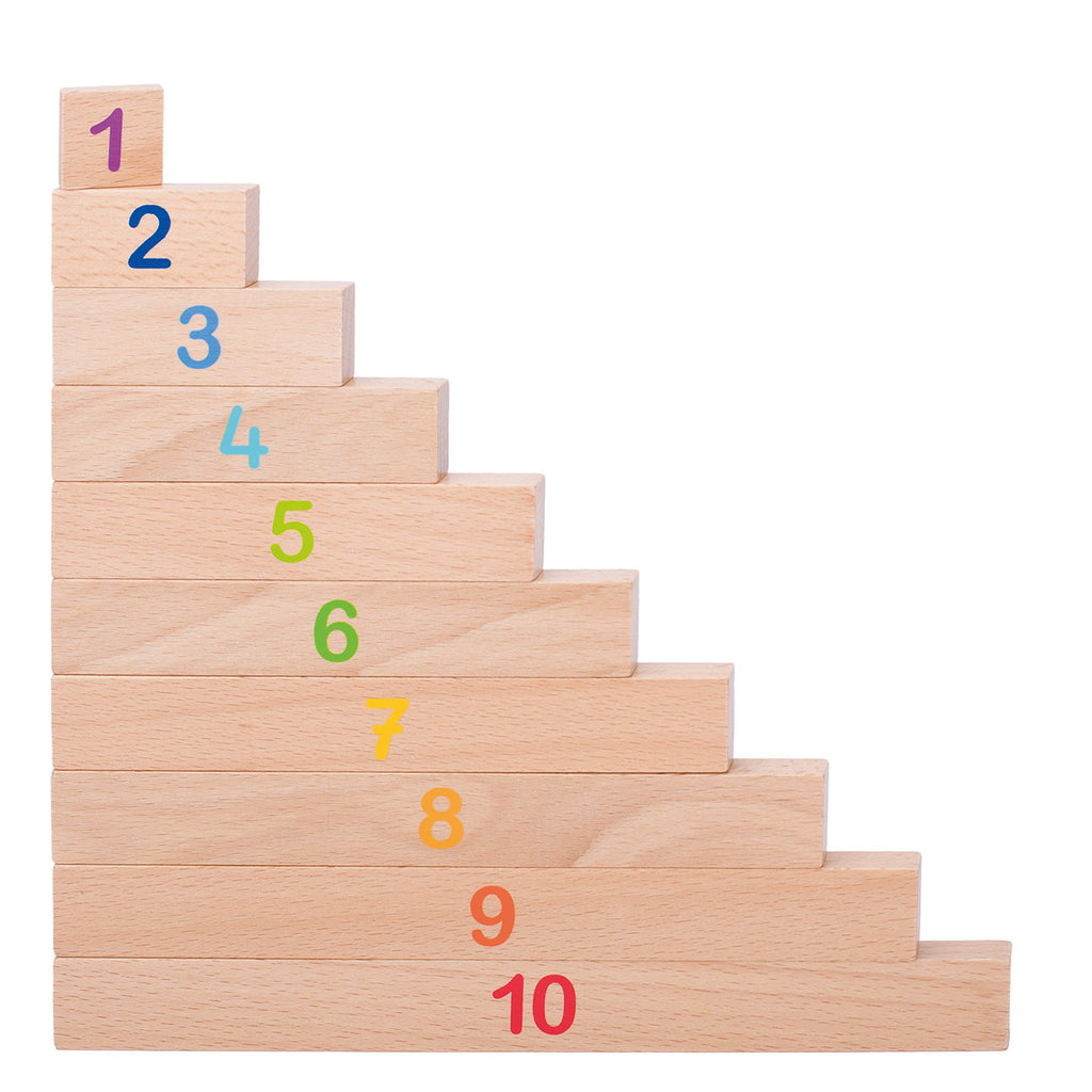 Met deze rekenlinialen, gemaakt van kwalitatief beukenhout, leren kinderen de basis van wiskunde. De voorkant van de plankjes zijn voorzien van een bepaald aantal stippen en de achterkant met het cijfer van het aantal stippen.
