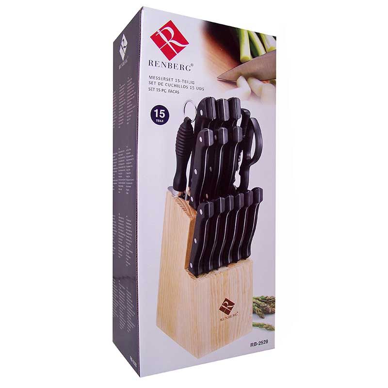 - Dit 15-delige houten messenblok wordt geleverd inclusief: