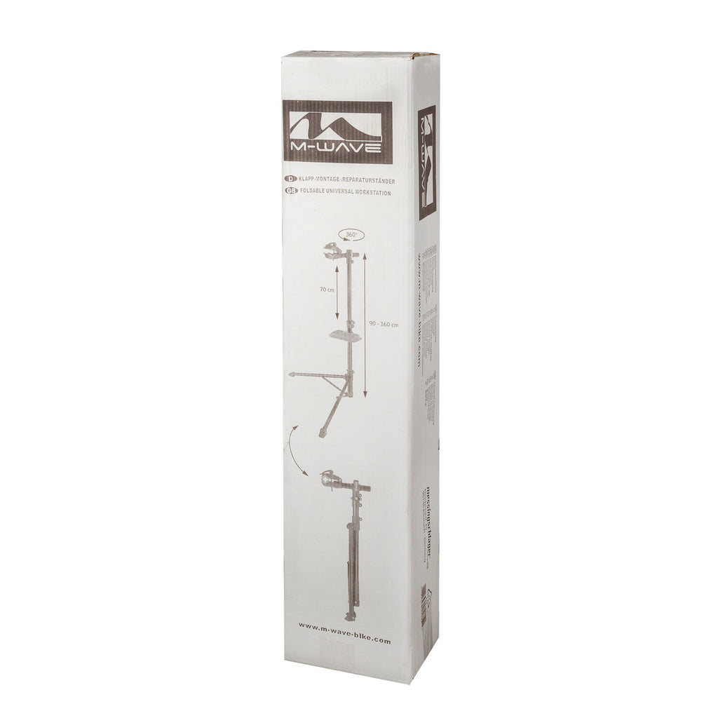 De M-WAVE Montagestandaard is de ideale oplossing voor fietsreparaties en onderhoud. Deze stabiele en veelzijdige standaard is in slechts enkele seconden uit- en inklapbaar, waardoor hij perfect is voor zowel thuisgebruik als onderweg. Dankzij de 360° draaibare arm en de verstelbare hoogte biedt deze montagestandaard maximale flexibiliteit bij het sleutelen aan je fiets. Belangrijkste kenmerken: Binnen enkele seconden op te zetten en in te klappen Hoogte verstelbaar voor optimaal werkcomfort 360° draaibare arm voor volledige bewegingsvrijheid Inclusief kunststof gereedschapsbakje voor handige opslag Maximale belasting: 28 kg Geschikt voor diverse onderhoudswerkzaamheden: Remmen Versnellingen en aandrijving Frame en wielnaven Banden, vorken en dempers Cockpit en schoonmaakbeurten Met zijn stevige constructie en compacte inklapbare ontwerp is de M-WAVE Montagestandaard een onmisbaar hulpmiddel voor iedere fietsliefhebber.