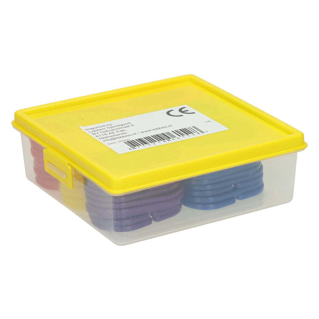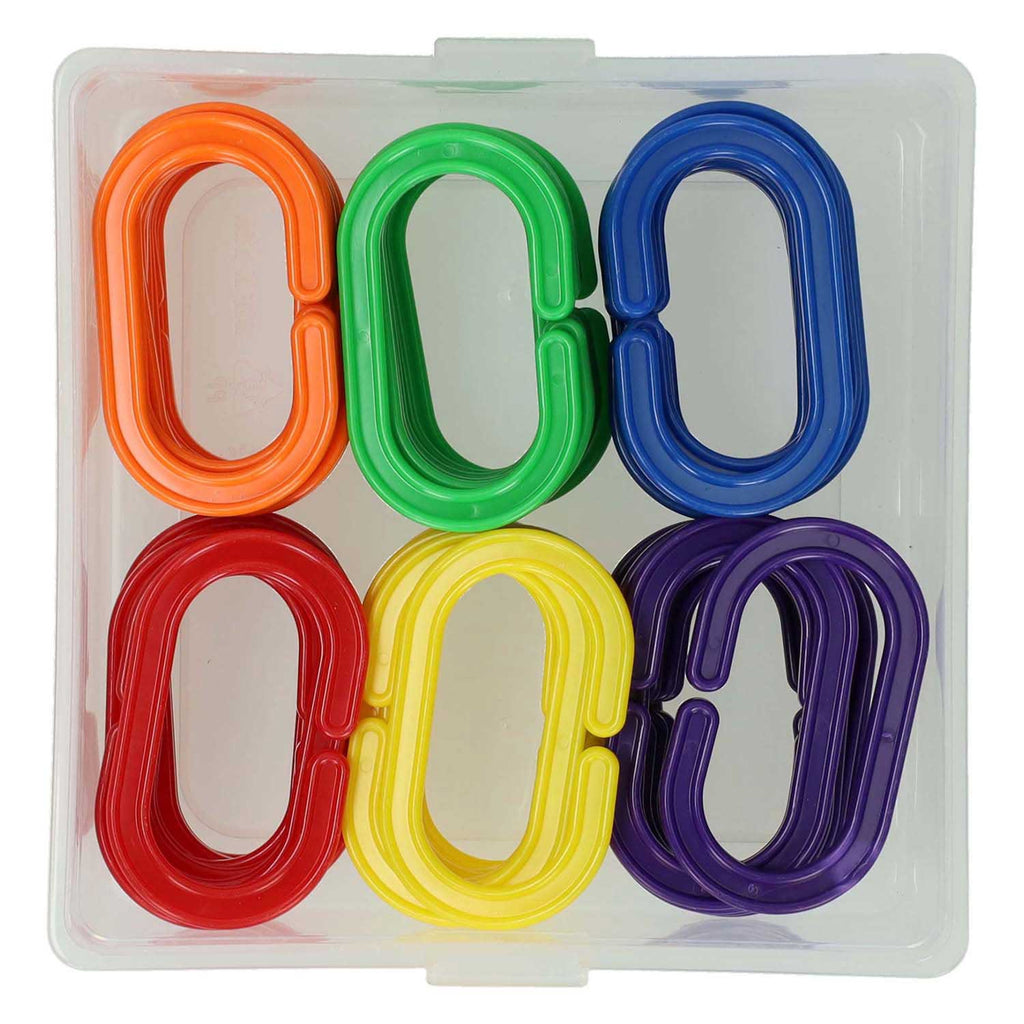 Set van 60 grote kunststof schakels in zes verschillende kleuren. De schakels klikken eenvoudig in elkaar en zijn geschikt voor spelenderwijs leren. Geleverd in een stevige opbergdoos.
