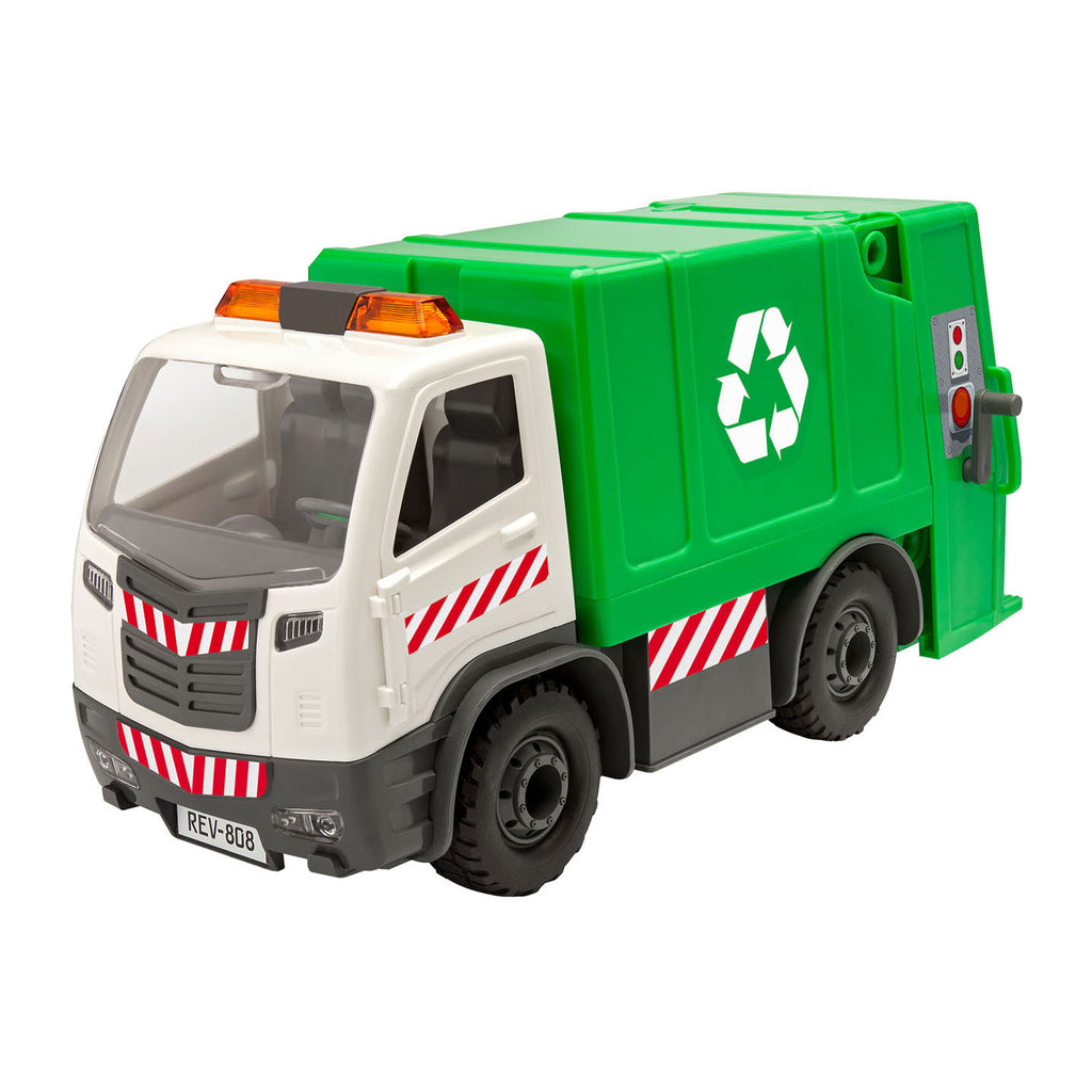De Revell Junior Kit serie biedt modelbouwsets voor kinderen vanaf vier jaar. Met behulp van de bijgeleverde schroevendraaier monteer je gemakkelijk alle onderdelen van dit bouwpakket in en ook weer uit elkaar en bouw je deze grote vuilniswagen. Kinderen werken zo spelenderwijs aan de ontwikkeling van hun fijne motoriek. De Revell Junor Kit Vuilniswagen bestaat uit 49 verschillende onderdelen, waaronder bumpers, ruiten, terreinbanden, stoelen, zwaailichten, vuilnisbak en speelfiguur.