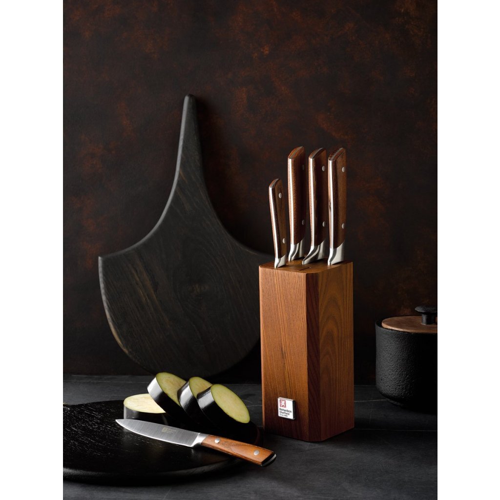 Gevormd tot een strak modern blok om een prachtige collectie vakkundig vervaardigde messen in te bewaren. Voor de volgende stap in je culinaire reis. Metbroodmes, koksmes, officemes, schilmes en vleesmes.