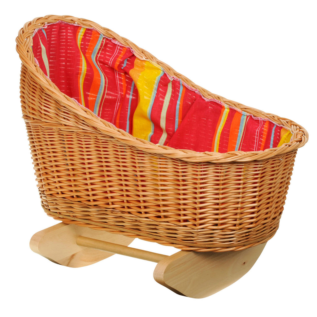 Leg je popje in het rieten bedje met onderstel van hout en wieg haar zachtjes in slaap. Inclusief een zachte deken en een kussen.