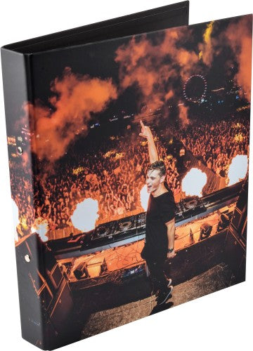 Ben ji al helemaal klaar voor het schooljaar? Deze map is in ieder geval niet te missen! Al je schoolopdrachten, aantekeningen, huiswerk en vele andere belangrijke papieren veilig opgeborgen in deze stoere 2-rings map van de wereldberoemde DJ Martin Garrix. Jouw favoriete DJ neeem je nu overal mee naar toe. De map is bedrukt met een foto van Martin Garrix aan het draaien bij een optreden.