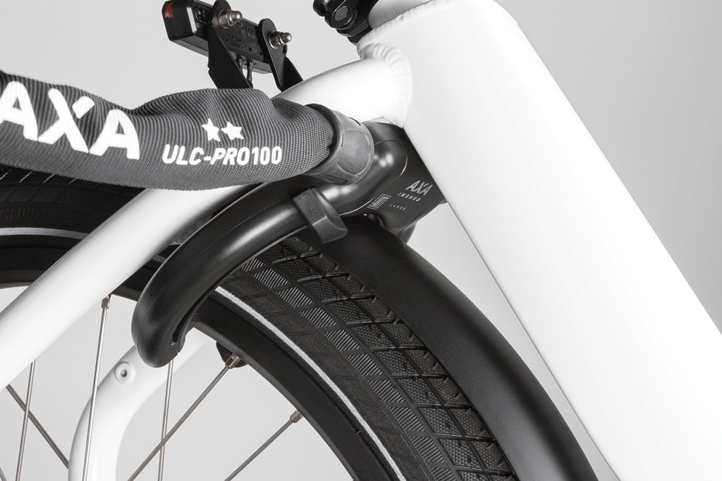 De AXA Imenso is een hoogwaardig frameslot met een innovatief design door de mogelijkheid een UPI plug-in kabel of ULC plug-in ketting in de zijkant van het slot te steken en zo uw fiets aan een vast object te verbinden. Het ringslot heeft een ART 2 sterren goedkeur, hiermee voldoet het slot aan de eisen om een fietsverzekering af te sluiten. Het Imenso ringslot biedt optimale beveiliging door de anti-boor cilinder en de gehard stalen beugel. De ergonomische bedieningsknop biedt u maximaal comfort. Mocht het gebeuren dat u uw fietssleutel kwijt bent, dan is dat geen probleem. Een extra sleutel kan via de AXA online sleutelservice besteld worden en wordt binnen enkele dagen geleverd. De AXA Imenso is op verschillende manieren te monteren. Het slot wordt standaard gemonteerd op montagegaten in het frame van de fiets. Als er geen montagegaten in het frame van de fiets zitten om een ringslot te monteren kunt u de AXA Flex mount strips bestellen en gebruiken. De Imenso Large heeft een extra brede opening van 75 mm zodat deze ook past bij brede spatborden of ballonbanden. Dit ringslot heeft de kleur zwart. Safety description Beveligingsniveau 12 Voldoet aan de Nederlandse ART 2 sterren norm Maximale beveiliging door extra ULC plug-in mogelijkheid Kinderbeveiliging Comfort description Ergonomische bedieningsknop Online sleutelservice Leverbaar in de kleur zwart Technical description Gehard stalen beugel en slothuis Anti-boorplaat in de cilinder Montage middels flexibele bevestiging, ook voor afwijkende framebuizen Extra brede opening van 75 mm Past op brede spatborden of ballonbanden Beschermd tegen boren: Ja Kleur primair: zwart Productlengte: 160 mm Productbreedte: 170 mm Producthoogte: 35 mm Aantal sleutels: 2 Logistieke informatie Afmetingen verpakt product: 220 x 160 x 40 mm Productgewicht: 730 gr Verpakt product gewicht: 770 gr Montage informatie Inclusief bevestigingsmiddelen: Nee
