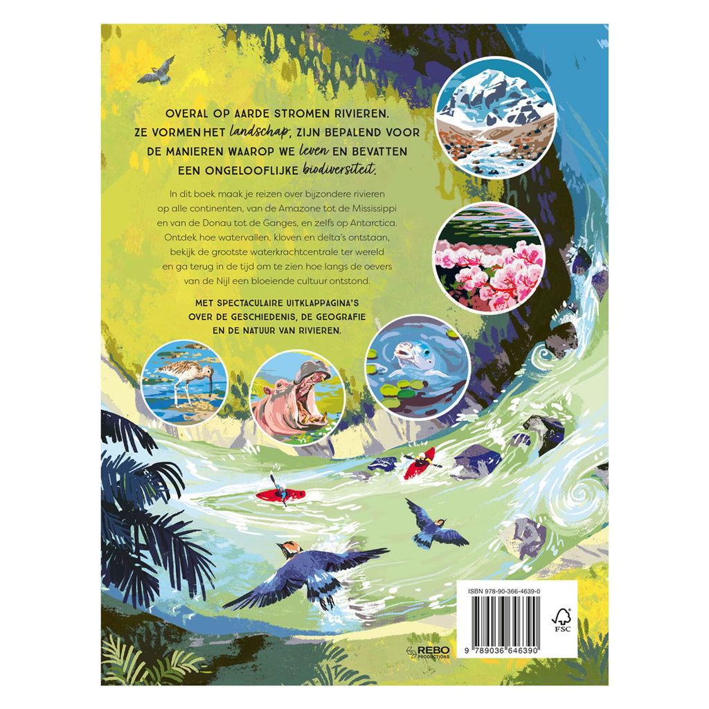 In dit boek maak je reizen over bijzondere rivieren op alle contineten, van de Amazone tot de Mississippi en van de Donau tot de Ganges, en zelfs op Antactica. Met spectaculaire uitklappagina’s over de geschiedenis, de geografie en de natuur van rivieren.