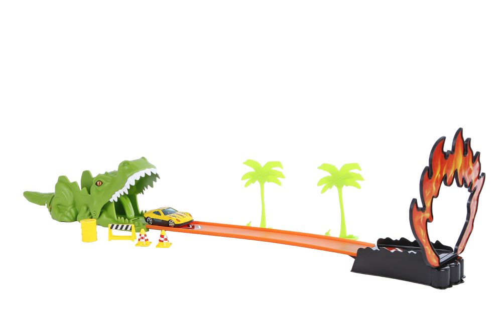 Roadblasters Afschietdino met Metalen Auto en diverse accessoires, 68cm groot. Geschikt voor kinderen vanaf 5 jaar oud.