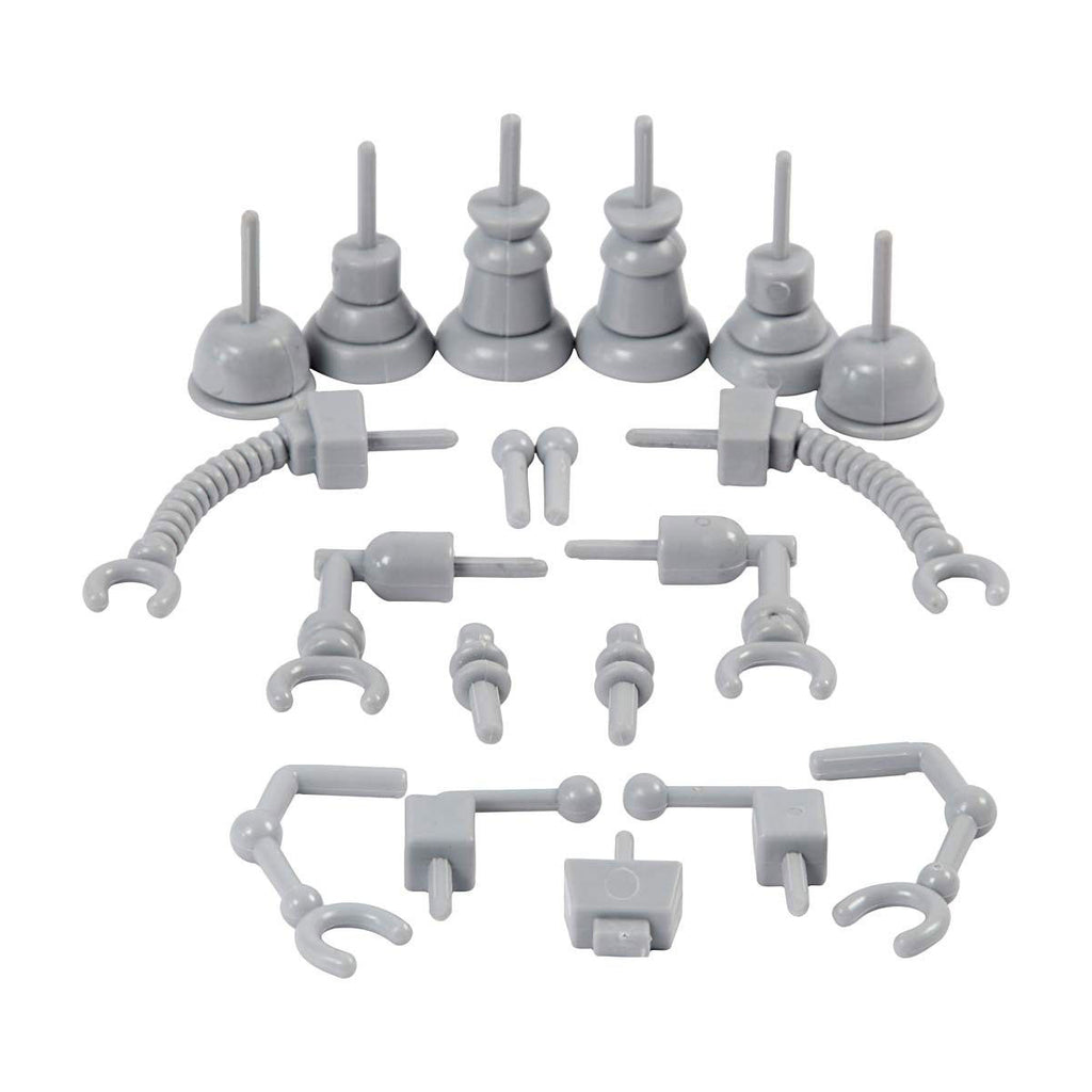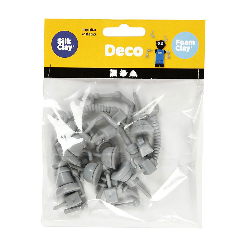 Assortiment kleine onderdelen om een robot te maken. Kan bevestigd worden in allerlei soorten klei. Afmeting: 0,5 - 6 cm.