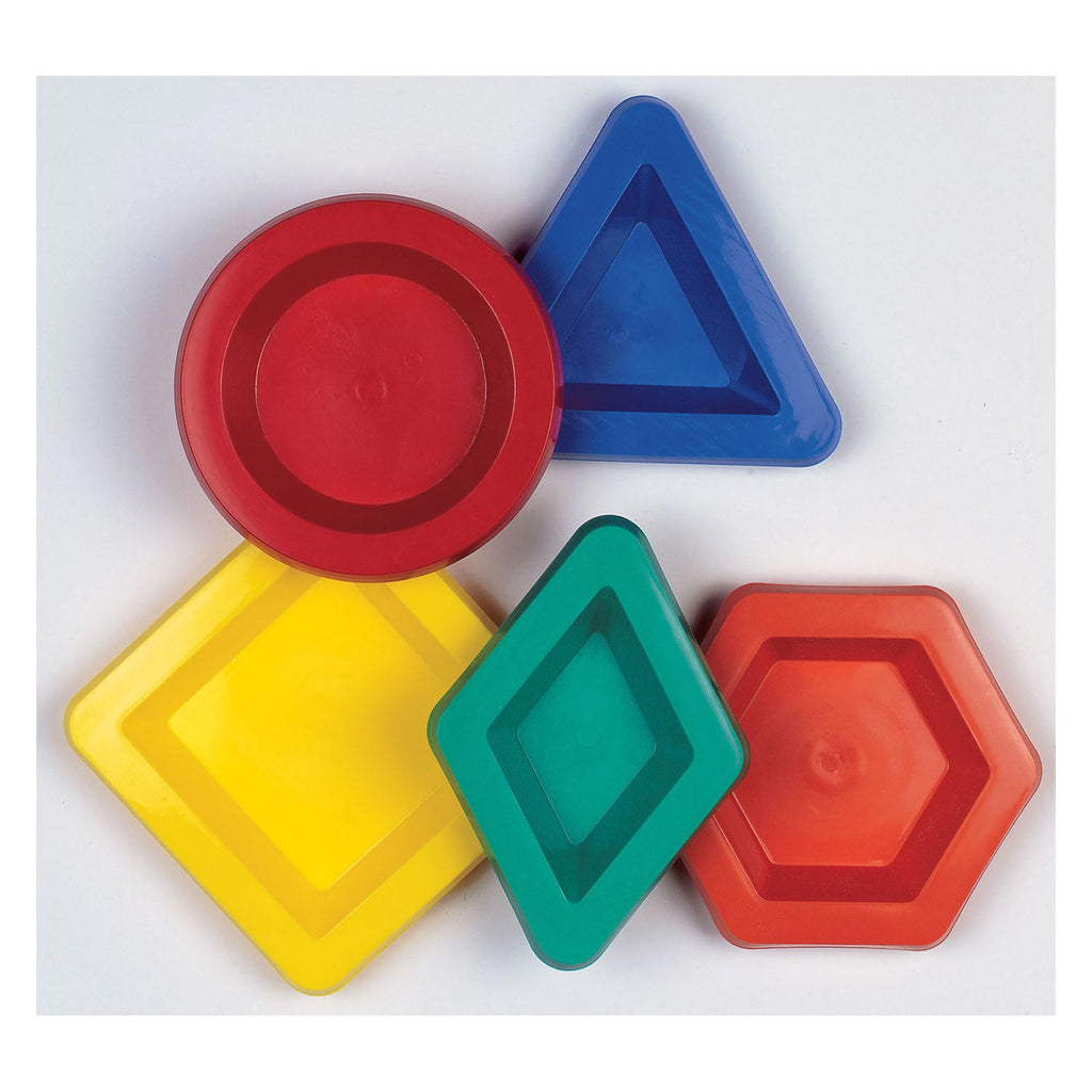 Lekker groot en felgekleurd, raken niet gauw zoek onder het zand! Inhoud: 1 cirkel, 1 vierkant, 1 ruit, 1 zeshoek en 1 driehoek. Afmeting ca. 19 × 19 cm. En nog gemaakt van ECO plastic ook!
