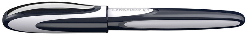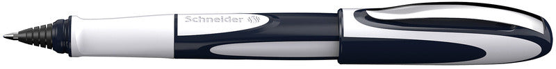 Rollerbalpen met ergonomische rubberen grip. Iridium penpunt gemaakt van hoge kwaliteit roestvrij staal. Voorzien van standaard inktvullingen, koningsblauw (uitgumbaar). Geschikt voor zowel rechts- als linkshandigen. Houderkleur blauw/wit.