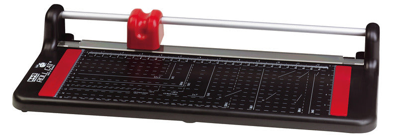 Rol snijmachine voor hobby, kantoor en school. Snijmachine van hoge kwaliteit kunststof, kleur zwart. Geslepen roterend rondmes en geslepen ondermes van gehard staal. Mesbeveiliging door gesloten ergonomische kunststofkop. Snijd papier, film en ander zacht materiaal. Snijlengte: 320 mm, maximale dikte 0,6 mm. Gebruiksvriendelijk door precisie mm-verdeling voor DIN-formaten, fotoformaten en CD-cover. Reserve rondmes is separaat leverbaar.