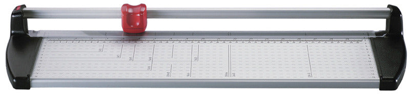 Rol snijmachine voor hobby, kantoor en school. Snijmachine van robuust aluminium, afgewerkt met zwart kunststof. Geslepen roterend rondmes en geslepen ondermes van gehard staal. Mesbeveiliging door gesloten ergonomische kunststofkop. Snijd papier, film en ander zacht materiaal. Snijlengte 260 mm - 460 mm, maximale dikte 0,6 mm. Gebruiksvriendelijk door precisie mm-verdeling voor DIN- formaten, fotoformaten CD-cover. Reserve rondmes is separaat leverbaar. Uitvoering zonder wisselkop. Snijlengte 52 cm. Aluminium.