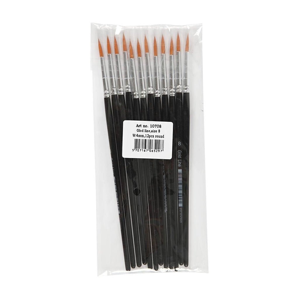Excellente ronde all-round penselen met nylon synthetisch haar en korte houten steel. Geschikt voor zowel dunne als dikke verven. Maat penseel: 8, breedte: 4 mm.