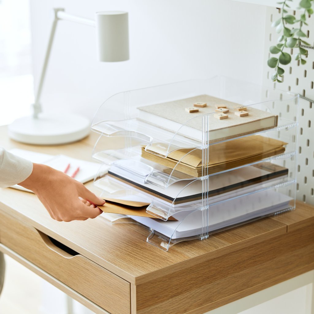 Een opgeruimd bureau maakt niet alleen een goede indruk op klanten en de baas. Het helpt je ook efficiënt te werken en je te concentreren op wat echt belangrijk is. Het documentbeheersysteem biedt een vaste plek voor de brieven, facturen en andere documenten die dagelijks binnenkomen, waardoor losse notities verleden tijd zijn. Meerdere opbergvakken kunnen op elkaar worden gestapeld en - naar wens - worden uitgebreid tot een individueel organisatiesysteem. Aan elk vak kun je een aparte functie toewijzen: facturen die nog betaald moeten worden, brieven die klaar zijn voor bezorging, mappen en andere kantoorbenodigdheden worden apart opgeborgen, zodat je altijd overzicht hebt over je documenten. Het klassieke lange formaat past perfect op het bureau of in de boekenkast. Niet alleen op kantoor, maar ook thuis creëer je een rustgevende orde.