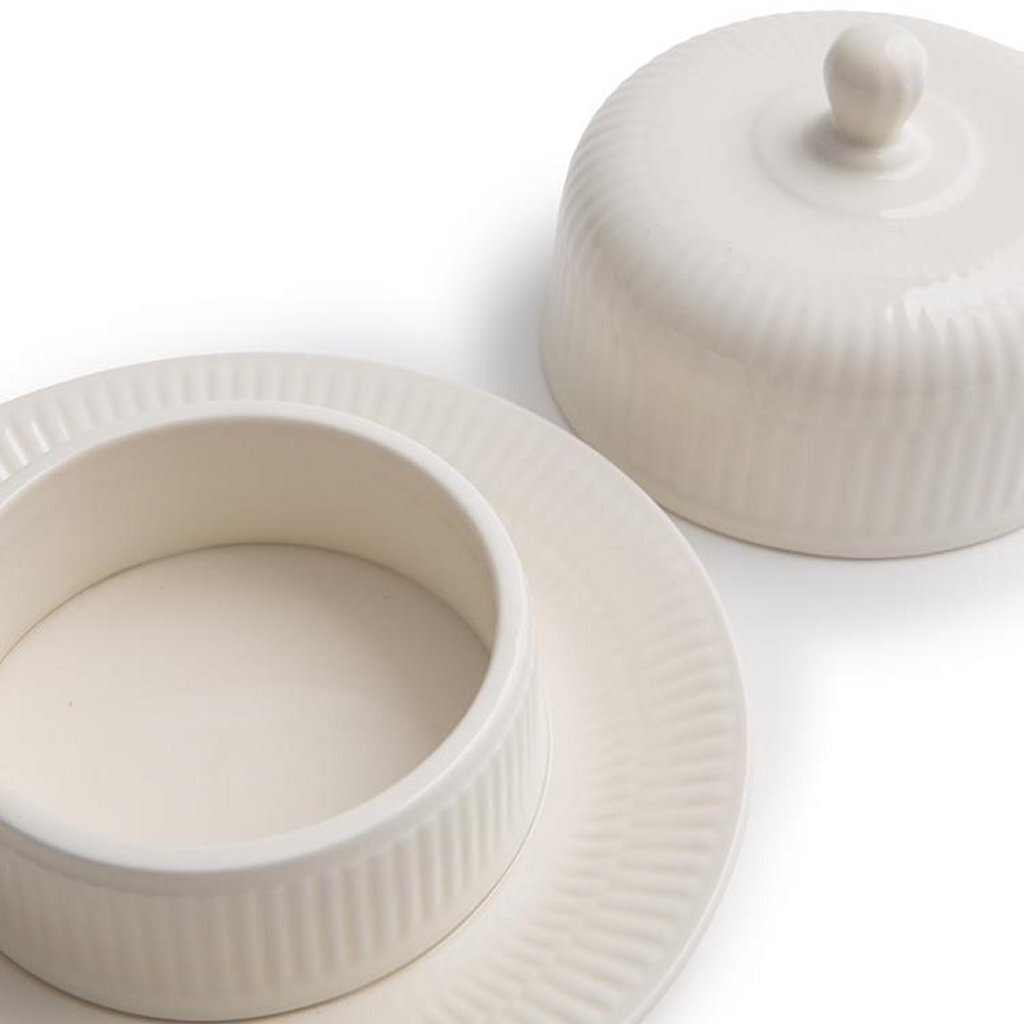 Een tijdloze klassieker, zo wordt de collectie Vienne van Royal Boch ook wel genoemd. Klassiekers worden vaak gekenmerkt door eenvoud met praktische vormen die voor elke gelegenheid gebruikt kunnen worden. De aantrekkingskracht van dit servies ligt in het typische reliëf dat keer op keer terugkomt. Vienne heeft een ronde botervloot met deksel in de collectie. Materiaal: aardewerk. Kleur: wit.