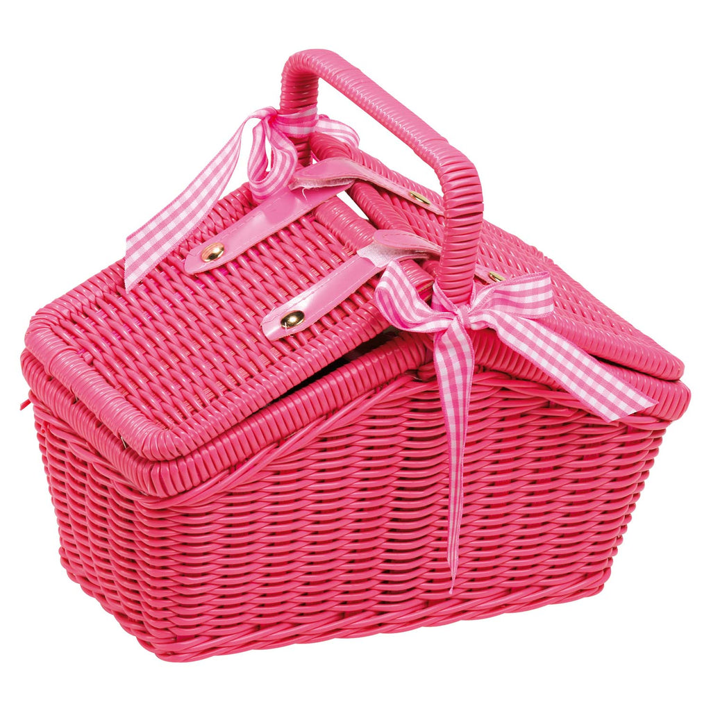 Neem je favoriete poppen en knuffels mee voor een gezellige picknick in het park met deze picknickmand met servies. Vul de mand aan met wat lekkers en je bent klaar om op pad te gaan! Wandel naar de tuin, stal het eten en het servies uit op de picknicktafel en genieten maar! De openklapbare picknickmand van roze riet bevat een theekan, kopjes, schoteltjes en bordjes van blik en 4 lepels in een handig stoffen servet. Spelen met de picknickmand stimuleert de ontwikkeling van fantasie en sociale vaardigheden.