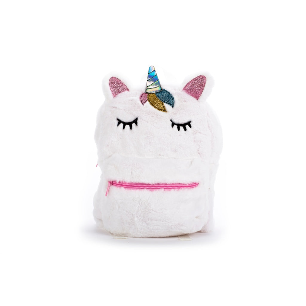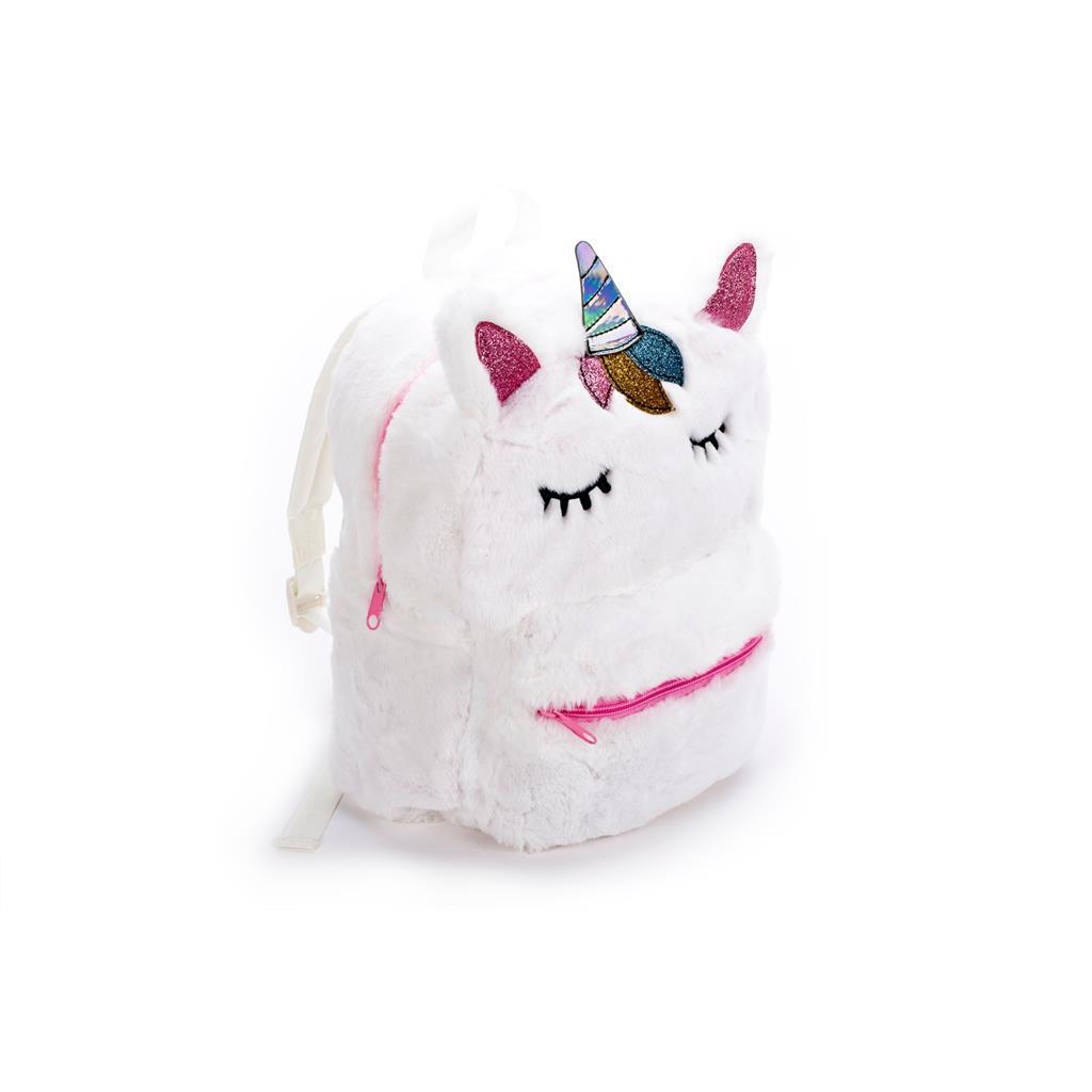 Neem je spullen overal mee naartoe in deze mooie zachte wit-roze Unicornrugtas