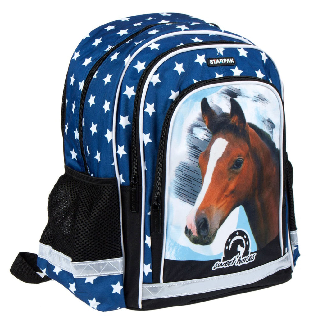 Neem de Rugzak Paarden mee als je een dagje uit gaat of naar school! De blauwwitte tas van het merk Starpak biedt volop plek: 1 groot ritsvak, kleiner ritsvakje, voorvakje en 2 zijvakjes voor een flesje water en andere kleine spulletjes. De Paarden Rugzak heeft een afmeting van 39x29x19,5 centimeter.