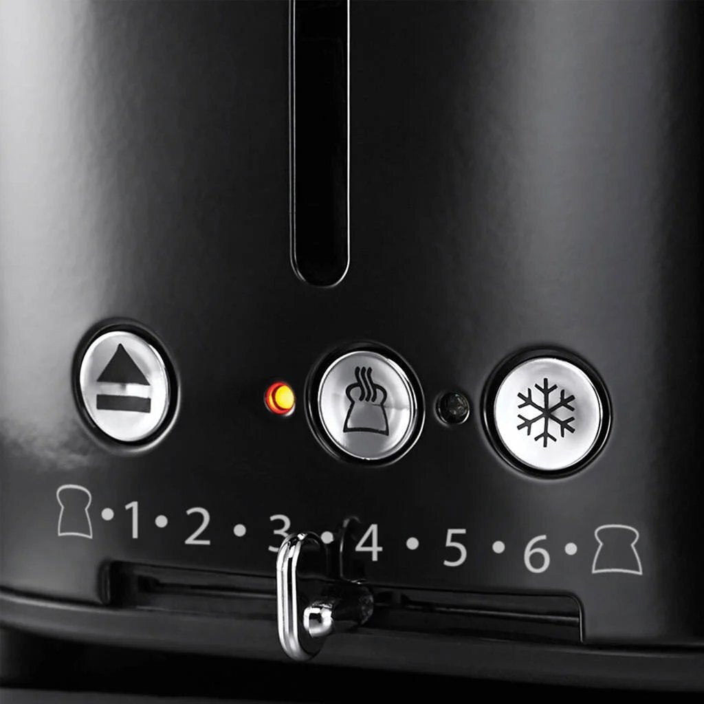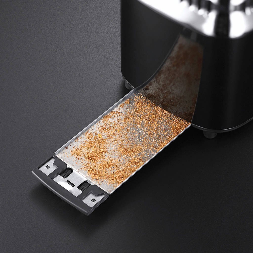 Hoe jij je toast ook het liefste hebt, met de chique Retro Classic Noir broodrooster heb je het helemaal onder controle. Bij Russell Hobbs begrijpen we dat toast meestal tijdens het ontbijt wordt gegeten en dat dat één van de drukste momenten van de dag is. Dus als je 's ochtends altijd haast hebt, zul je de snellere rooster-technologie van de Retro broodrooster, waarmee je toast 65% sneller klaar is, zeker kunnen waarderen. Licht geroosterd of juist liever goudbruin, met de variabele instelling voor de bruiningsgraad geniet je altijd van de perfecte toast. De broodrooster heeft zelfs een slimme afloopklok, zodat je kunt zien hoe lang het nog duurt. De Retro broodrooster heeft een Lift & Look-functie waarmee je je broodjes controleert zonder het programma te onderbreken. Deze geweldige broodrooster heeft ook een broodjeswarmer voor het warm houden van je croissantjes, pistoletjes en broodjes. En je werkoppervlak houd je kruimelvrij dankzij de geïntegreerde kruimellade waarin je kruimels en stukjes opvangt en deze gemakkelijk weggooit.