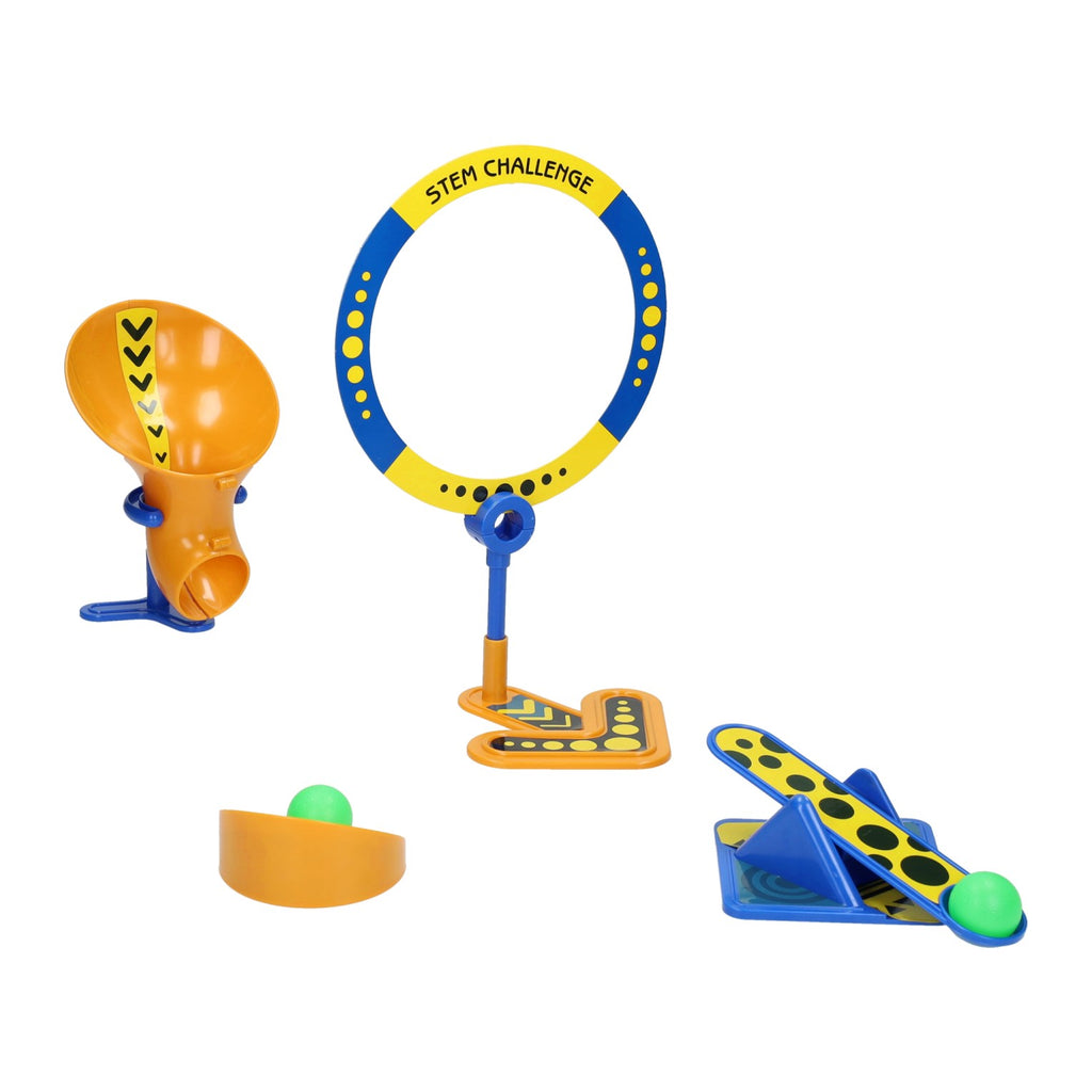 S.T.E.M. Challenge spel met katapult, ballen en doelen. Bevat 9 uitdagingen om natuurkundige principes te ontdekken en probleemoplossend denken te stimuleren. Geschikt vanaf 3 jaar.