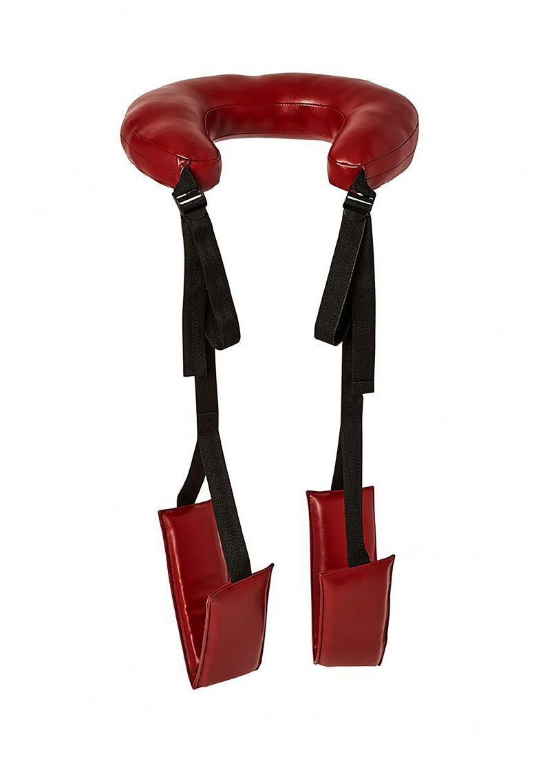 De Saffron Thigh Sling houdt moeiteloos de benen omhoog en laat de handen vrij. Schuif de gewatteerde banden om voeten of dijen. Verstel de benen snel op en neer door aan de band te trekken en los te laten die met het nekkussen verbonden is. Comfort en steun betekenen diepere en effectievere penetratie, zelfs voor mensen met kracht- of mobiliteitsbeperkingen. Geschikt voor dijen tot 32". Koppel je favoriete boeien aan elkaar en verbind ze met de D-ringen aan het nekkussen om dit seksuele positioneringsproduct om te zetten in boeien-spel.