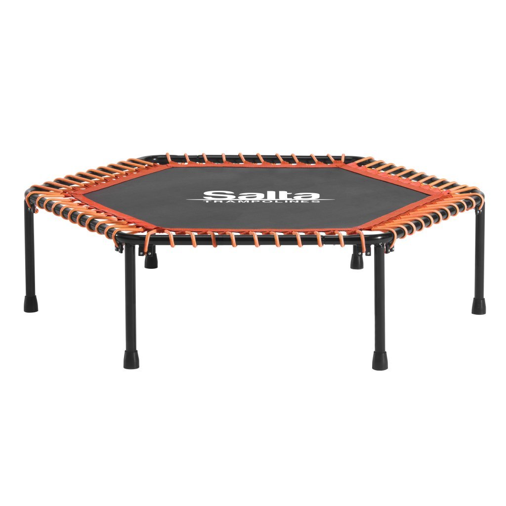 Deze professionele trampoline is bij uitstek geschikt voor gevorderden, maar evenwel voor de beginnende gebruiker. De beginners kunnen met de meegeleverde beugel extra stabiliteit en ondersteuning ervaren, en voor gevorderden is de beugel toepasbaar voor geavanceerde work-outs.De Fitness trampoline heeft een afmeting van maar liefst 128 cm, waardoor alle work-outs en trainingen fitness oefeningen effectief kunnen worden uitgevoerd. Doordat de elastieken vering optimaal en comfortabel is afgesteld, kan er geluidloos worden gesprongen en is springen niet belastend voor de rug en gewrichten. Hierdoor train je verantwoord alle spieren om je conditie en uithoudingsvermogen te verbeteren.De Salta Fitness trampoline is zodanig ontworpen dat de constructie een zeer solide en robuuste geheel vormt. De beugel is eenvoudig verstelbaar in 5 verschillende standen voor iedere gewenste hoogte.De fitness trampoline is veilig te gebruiken met en zonder beugel vanwege het bijgeleverde frame. De trampoline is uitvoerig getest voor 110kg maximum gewicht en geschikt voor commercieel, openbaar en uiteraard thuisgebruik.
