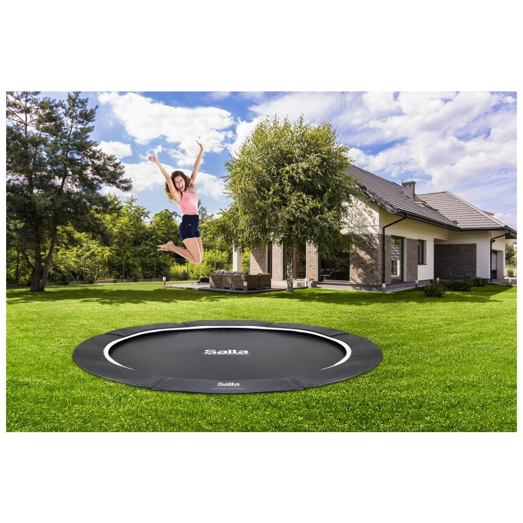 Deze revolutionaire Salta Royal 5063A Baseground trampoline ligt op gelijke hoogte met het gazon, waardoor deze schitterende trampoline volledig is geïntegreerd in uw tuin. Met het speciaal ontwikkelde "Air Performance Systeem"is de luchtverplaatsing volledig geoptimaliseerd. Deze functionaliteit is essentieel bij ingegraven trampolines om het springcomfort te perfectioneren. Hierdoor biedt de Salta Royal Baseground een ongekende springervaring en is de trampoline vanwege dit systeem ook nog eens zeer geruisloos.