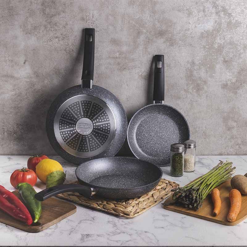 Deze koekenpannenset bestaat uit 3 koekenpannen en is dankzij zijn gerecyclede materiaal en coating op waterbasis niet alleen goed voor het milieu, maar ook voor jou. De pannen zijn onderdeel van de Roots-collectie, waarbij er speciale aandacht is voor duurzaamheid. Deze pannenset wordt vervaardigd uit maar liefst 89 gerecyclede blikjes.