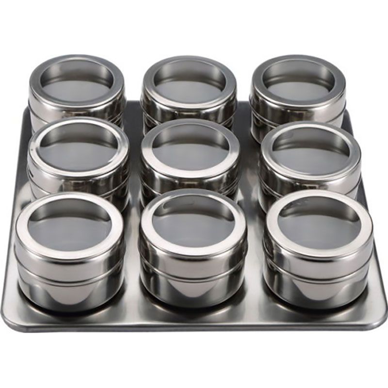 - Stijlvol magnetisch rek incl. 9 kruidenpotjes