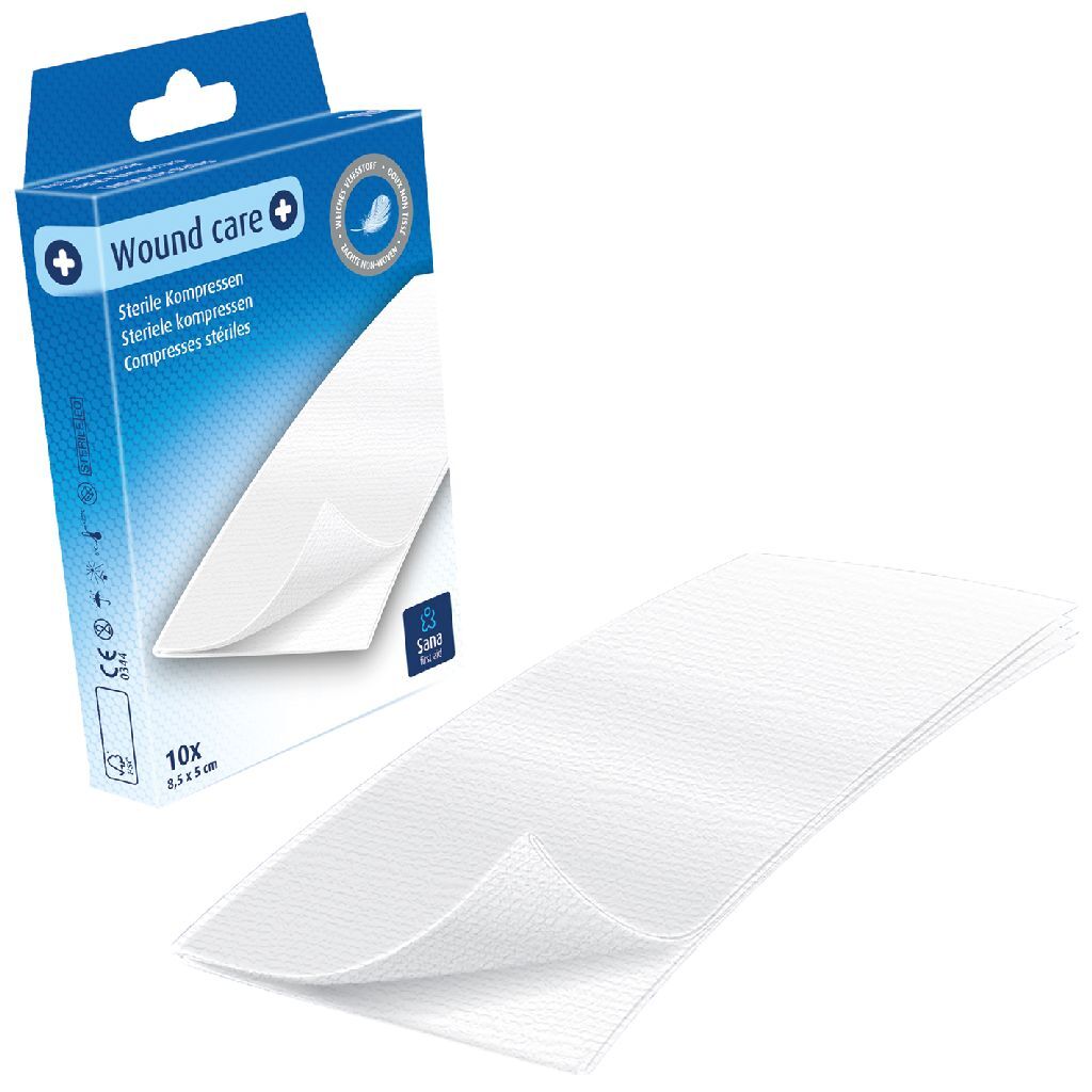 DezeSana First Aid steriele kompressen van 8,5 x 5 cm zijn ideaal voor het schoonmaken van de wondomgeving en voor het afdekken van grotere wonden.Inhoud: 10 stuks.