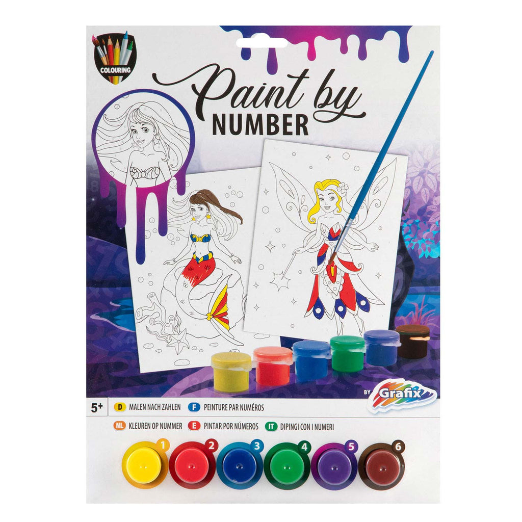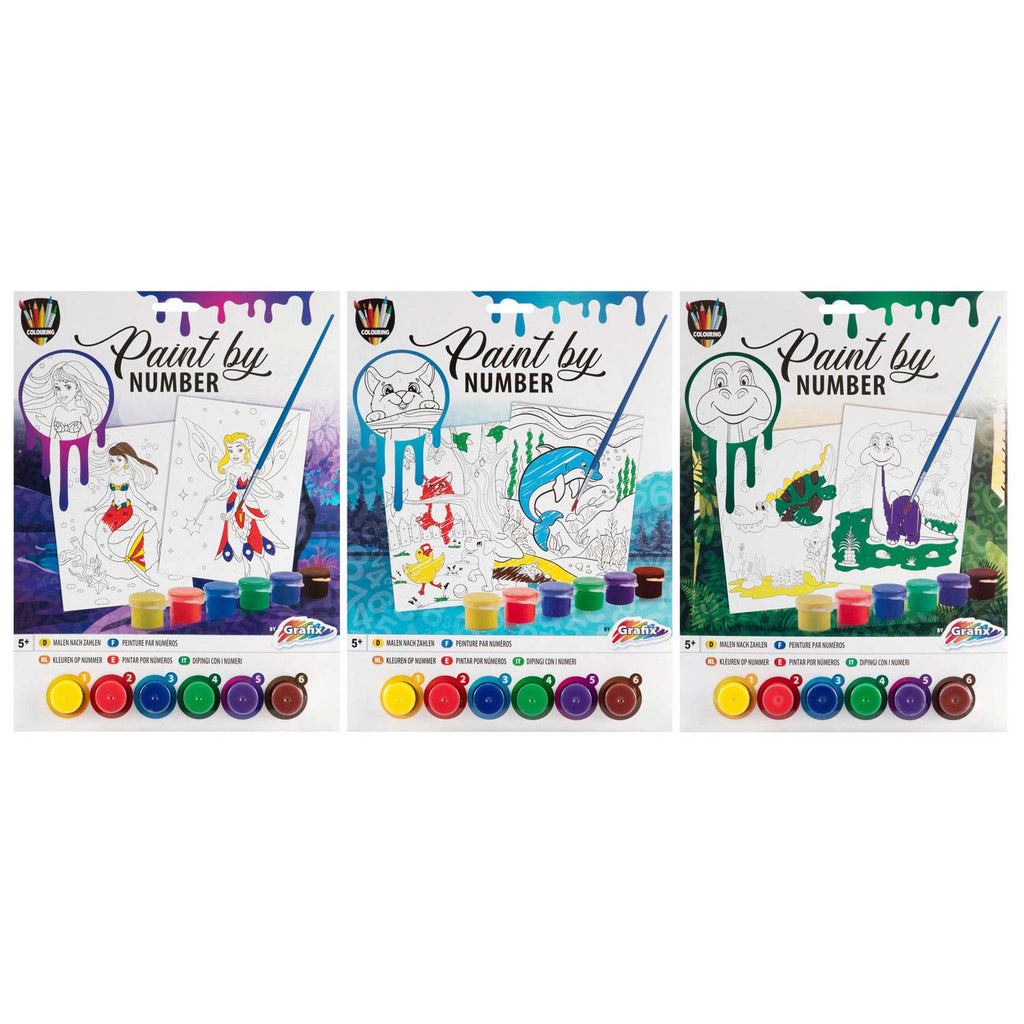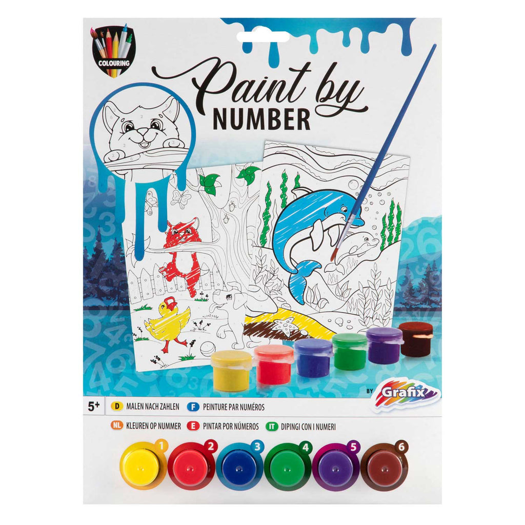 Schilderen op nummer. Inhoud: 2 schilderijen, 6 kleuren verf en een penseel. Geschikt van 5 tot 10 jaar.