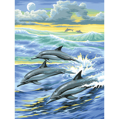 Met Schilderen op Nummer maak je met een beetje hulp de mooiste schilderijen. Volg de aanwijzingen op en geef alle vlakken de juiste kleur.Wanneer je klaar bent heb je een schilderij van een groep dolfijnen in het water.