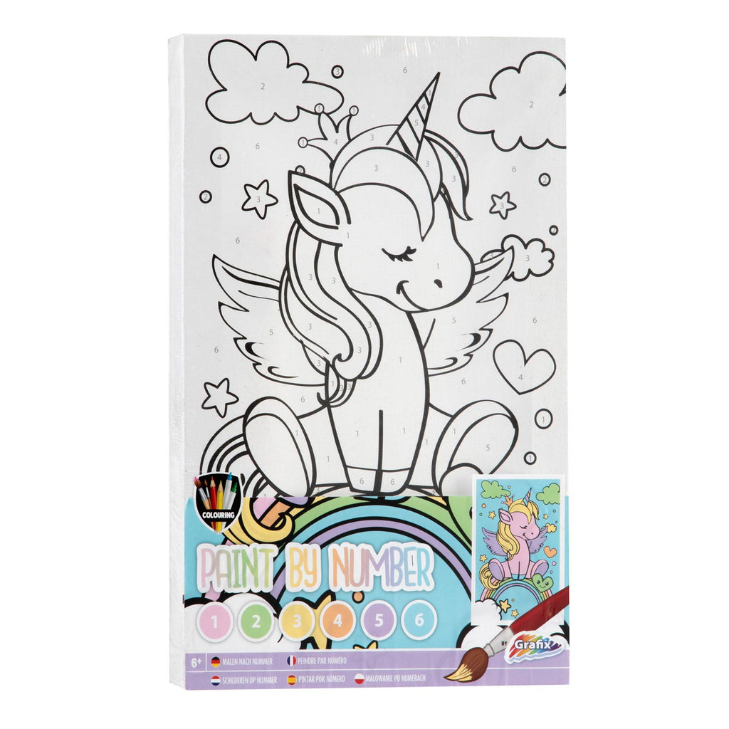 Schilderen op Nummer - Eenhoorn. Schilderen op nummer is een leuke activiteit voor kinderen waarbij de ontwikkeling op verschillende manieren wordt gestimuleerd. Zo oefen je de fijne motoriek door het vasthouden van de penseel en het binnen de lijntjes verven. Ook ontwikkelt de logica bij het kind doordat er een specifiek patroon gevolgd moet worden.
