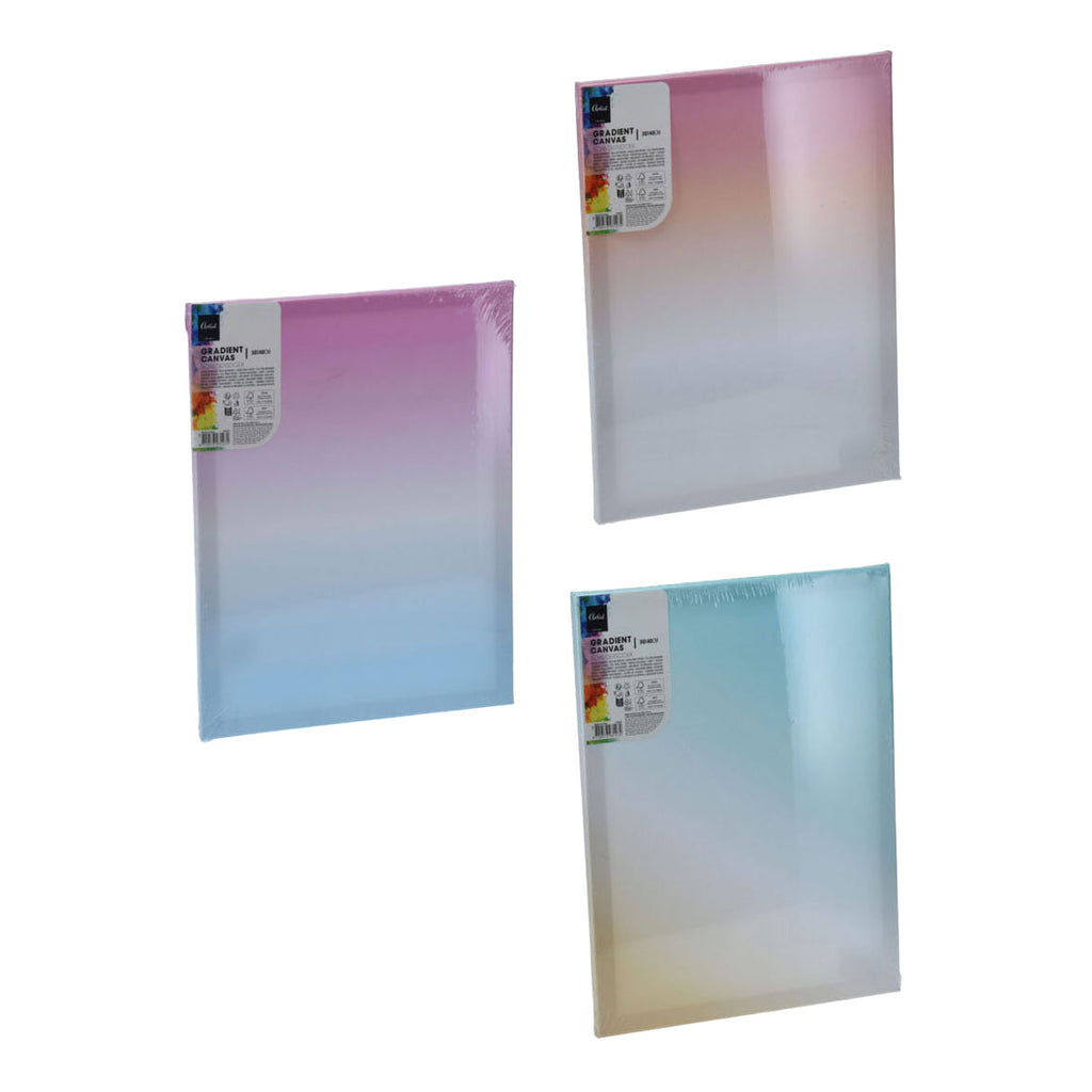 Schildersdoek met ombre-effect, een extra mooie ondergrond voor je kunstwerken. Het doek is 30 x 40 centimeter groot en wordt geleverd in één van de drie kleurencombinaties.