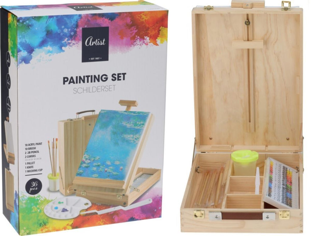 - de tekenkist is gemaakt van duurzaam dennenhout, voorzien van het FSC keurmerk