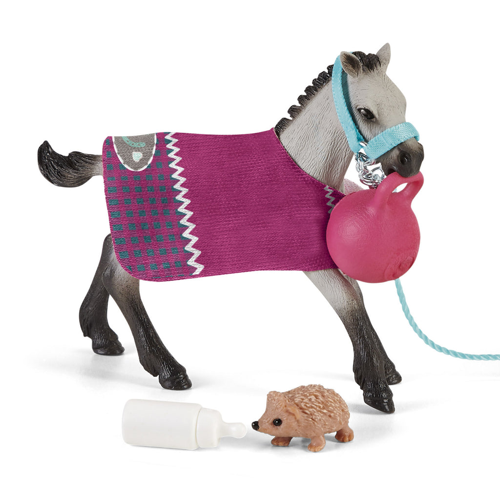 Voor het speelplezier met veulens uit de schleich Horse Club is er een speelbal inbegrepen, die speciaal voor paarden is ontwikkeld. Hij heeft een greep die het quarter horse veulen met zijn tanden vast kan houden. Bij het spelen verwart het veulentje een schattig egeltje met de bal en merkt al snel hoe stekelig hij is! Gelukkig houden ze niets over aan hun grappige ontmoeting en worden vriendjes. Na het ravotten sterkt het veulen zich aan het zuigflesje en hij heeft een warme deken zodat hij het niet koud krijgt. De schleich® figuren zijn natuurgetrouw gemodelleerd en staan voor pedagogisch waardevol speelgoed.
