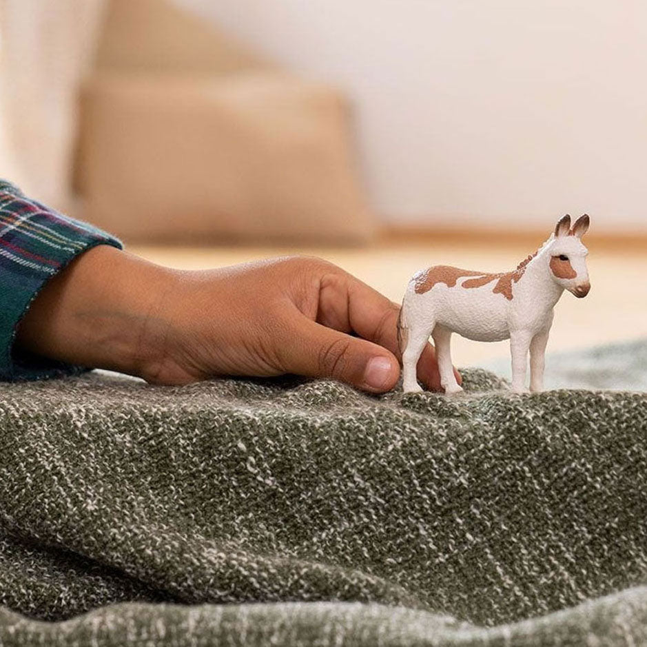 Grijs is achterhaald. Deze vierpotige vriend zie je al van veraf aankomen: deze Amerikaanse ezel is schitterend gevlekt. Zelfs zijn borstelige manen zijn tweekleurig. En hij is zo koppig als hij maar zijn kan: kijk je diep in zijn ezelogen met die lange wimpers, dan wil je 'm toch alles geven waar hij om vraagt? Wie kan die aanblik nou weerstaan?