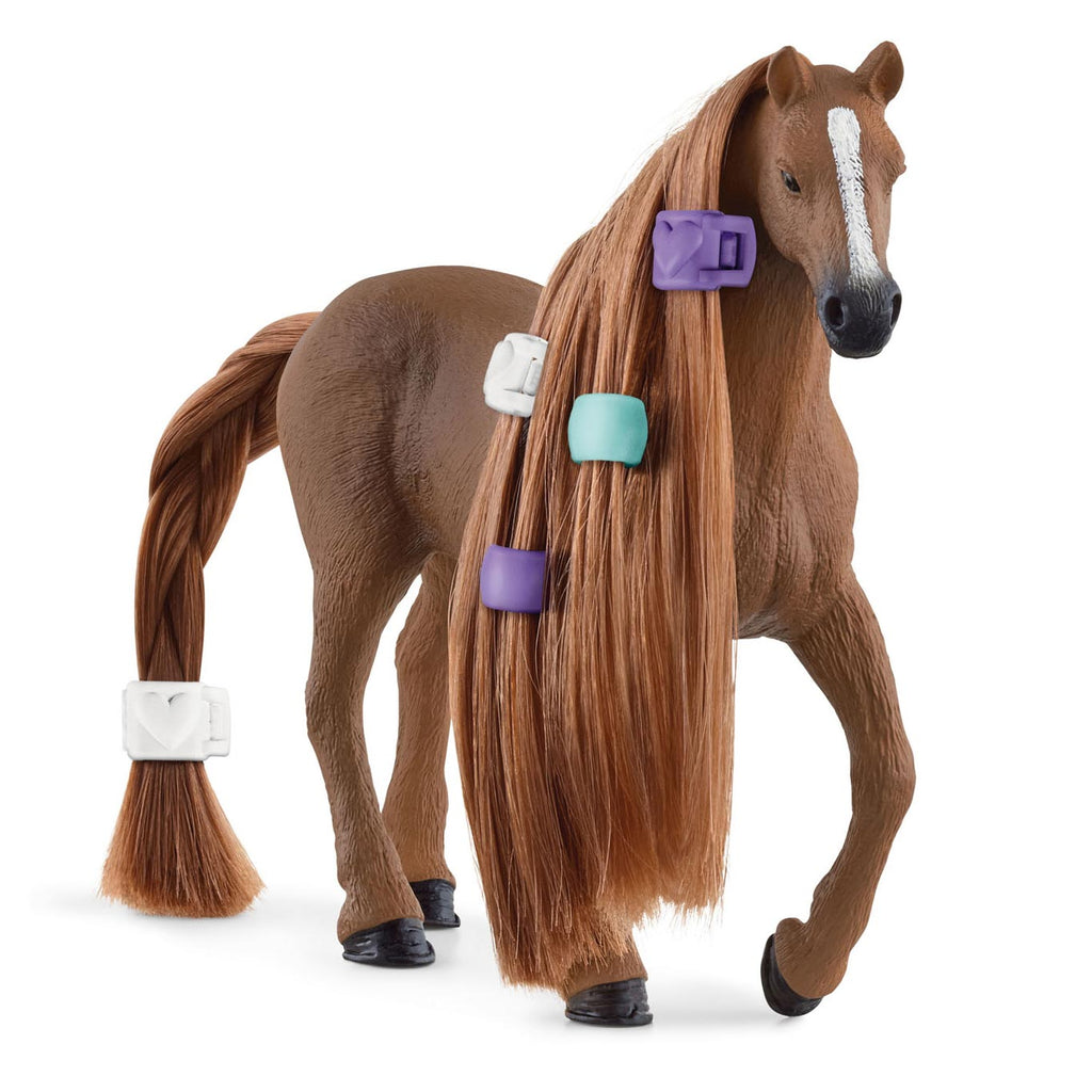 Schleich Horse Club schoonheidspaard Engelse Thoroughbread merrie met haar-accessoires. Geschikt voor kinderen vanaf 4 jaar.