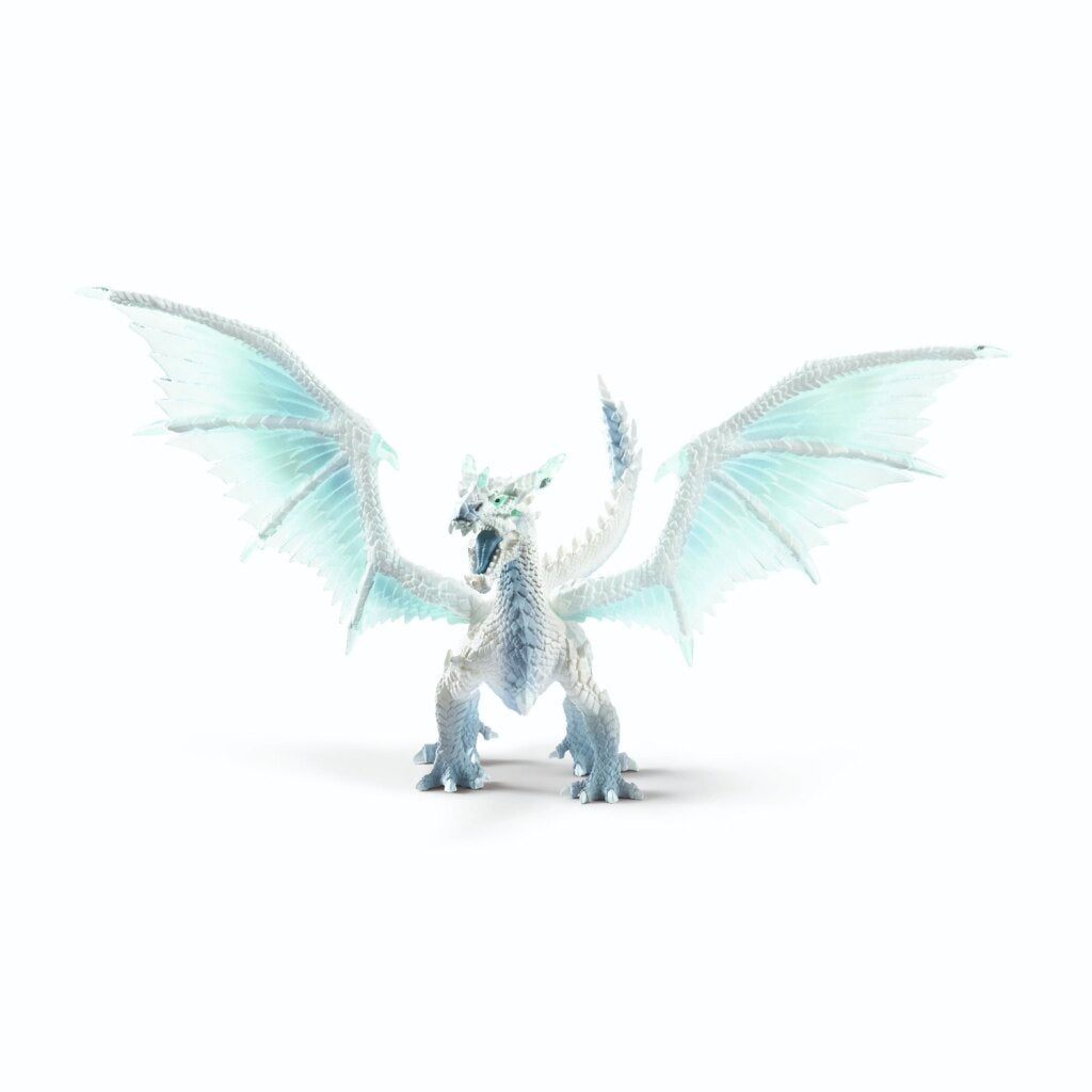 Wie de ijsdraak tegenkomt, mag uitkijken, want hij kan zijn tegenstanders in een mum van tijd koud maken! Het is bijna niet mogelijk aan hem te ontkomen. Hij vliegt snel en kan scherpe bochten maken om zijn vijanden binnen de kortste keren in te halen. Op zijn vleugels heeft hij gevaarlijke stekels van ijs waarmee hij door ieder pantser prikt, hoe dik dat ook mag zijn. Bovendien gebruikt hij in gevechten zijn staart als een enorme knots. Tegenstanders die hij raakt, zien alleen nog maar ijssterretjes! Tegen zijn sterkste wapen zijn zelfs de beste strijders van Eldrador machteloos. En dat is zijn adem waarmee hij aanvallers laat bevriezen! Geschikt voor kinderen vanaf 7 jaar.