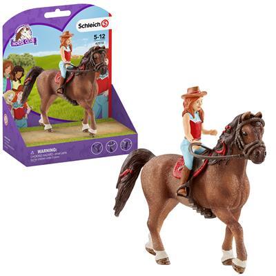 Schleich speelset, bestaande uit een quarter horse hengst en zijn amazone! Hannah is dol op westernrijden. Bij het uitmesten van de stal, maakte ze voor het eerst kennis met Cayenne. Sindsdien zijn de twee beste vrienden. De figuurtjes zijn tot in detail met de hand gemaakt en geverfd. De prachtige details zorgen voor een levensechte uitstraling! Hannah kan de teugels van Cayenne vastpakken, op het paard zitten en heeft beweegbare onderdelen voor een realistische speelervaring. Afmetingen: 15 x 8,2 x 18 cm. Geschikt voor kinderen vanaf 3 jaar.