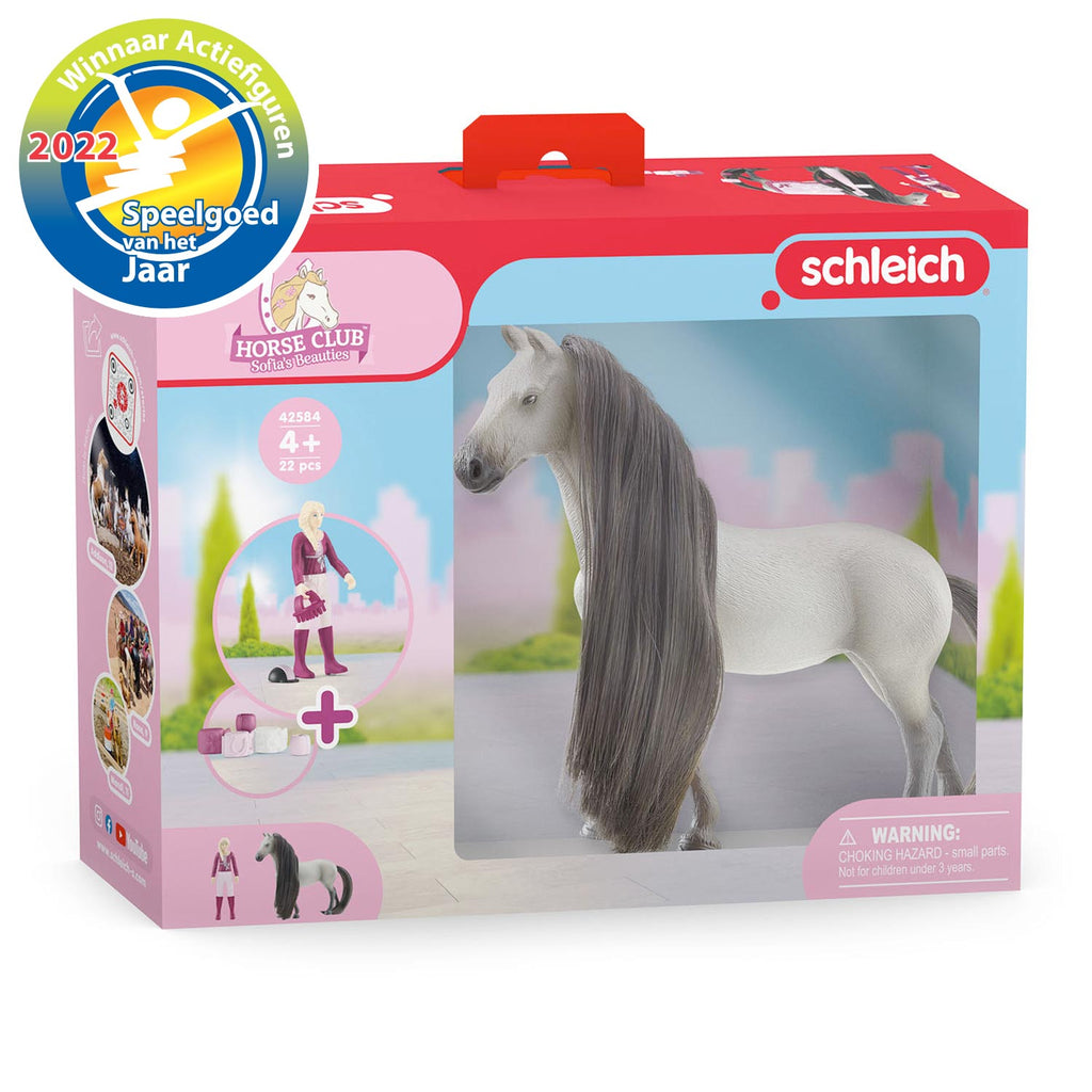 Sofia's Beauties, nieuw in het schleich®-assortiment, laten de harten van kleine fans sneller kloppen! Nieuw: paarden met kambare manen en staart! Dit garandeert eindeloos speelplezier, want de manen en staart kunnen eenvoudig worden omgewisseld en naar hartenlust worden gestyled. Afmetingen: 24,5 x 6 x 19 cm. Geschikt voor kinderen vanaf 6 jaar.
