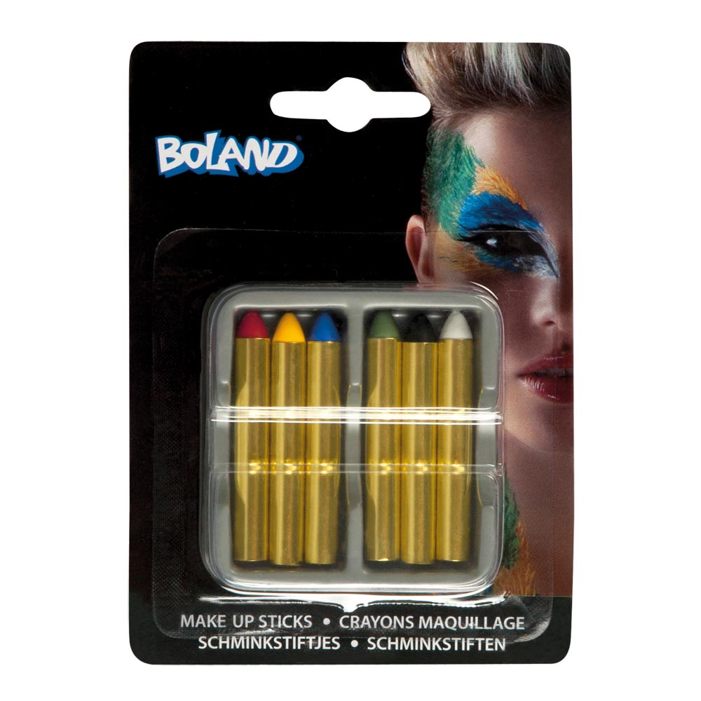 Set van 6 schmink sticks in verschillende kleuren.