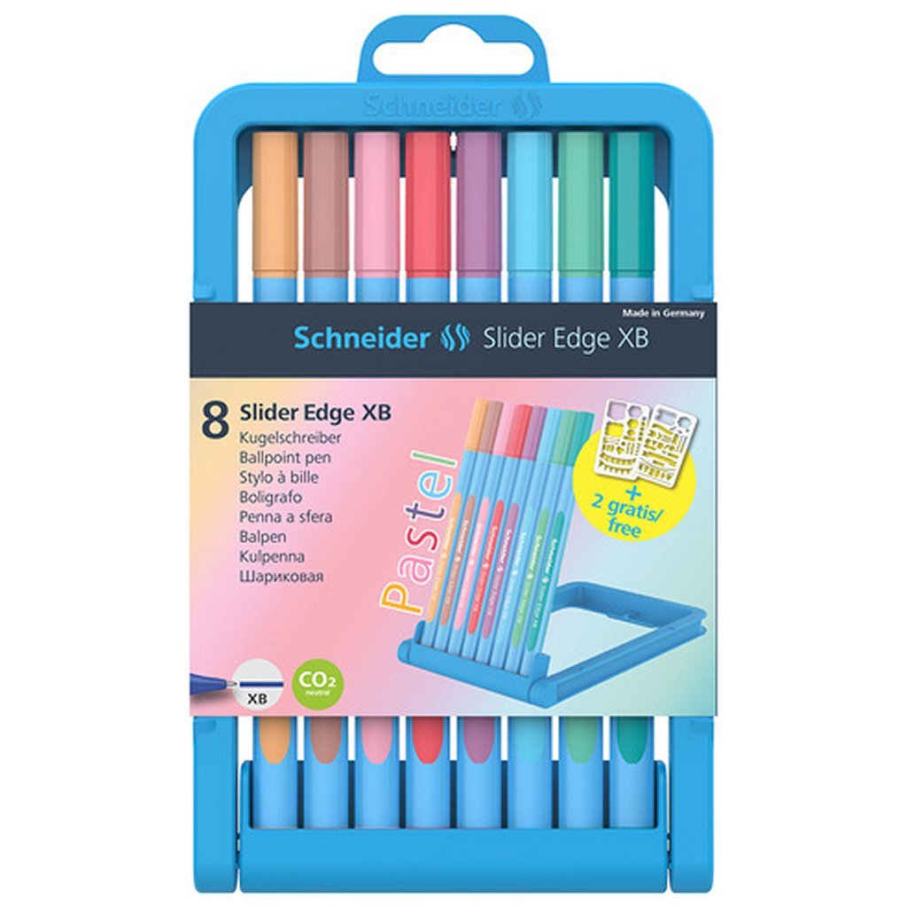 Balpen met Met Viscoglide technology. voor buitengewoon soepel en zacht schrijven. Balpen met rubberen 3-kantige schacht voor ontspannen schrijven. De dop kan omgedraaid worden. De slider Edge kan niet rollen op het buro en de slanke uitvoering past goed in een pennenlade of penetui. De inkt droogt snel en is vlekvrij, ook in combinatie met een tekstmarker. Slijtvaste roestvrijstalen punt. Lijnbreedte extra breed (XB). CO2 neutraal geproduceerd. Aantal: 8 stuks.