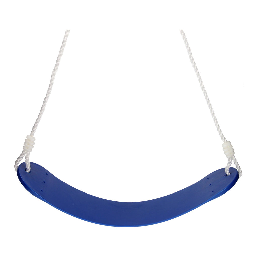 Hoger, hoger, hoogst! Met deze schommel vlieg je hoog in de lucht! Het zitvlak is gemaakt van flexibel kunststof en zorgt hierdoor voor een fijne zithouding. Ook heeft deze schommel het voordeel dat na een regenbui het zitvlak makkelijk weer droog te krijgen is met een handdoek. De schommel is voorzien van stevig touw en wordt opgehangen aan 2 stevige metalen ringen. De schommeltouwen zijn te verstellen tussen 105 en 185 cm.